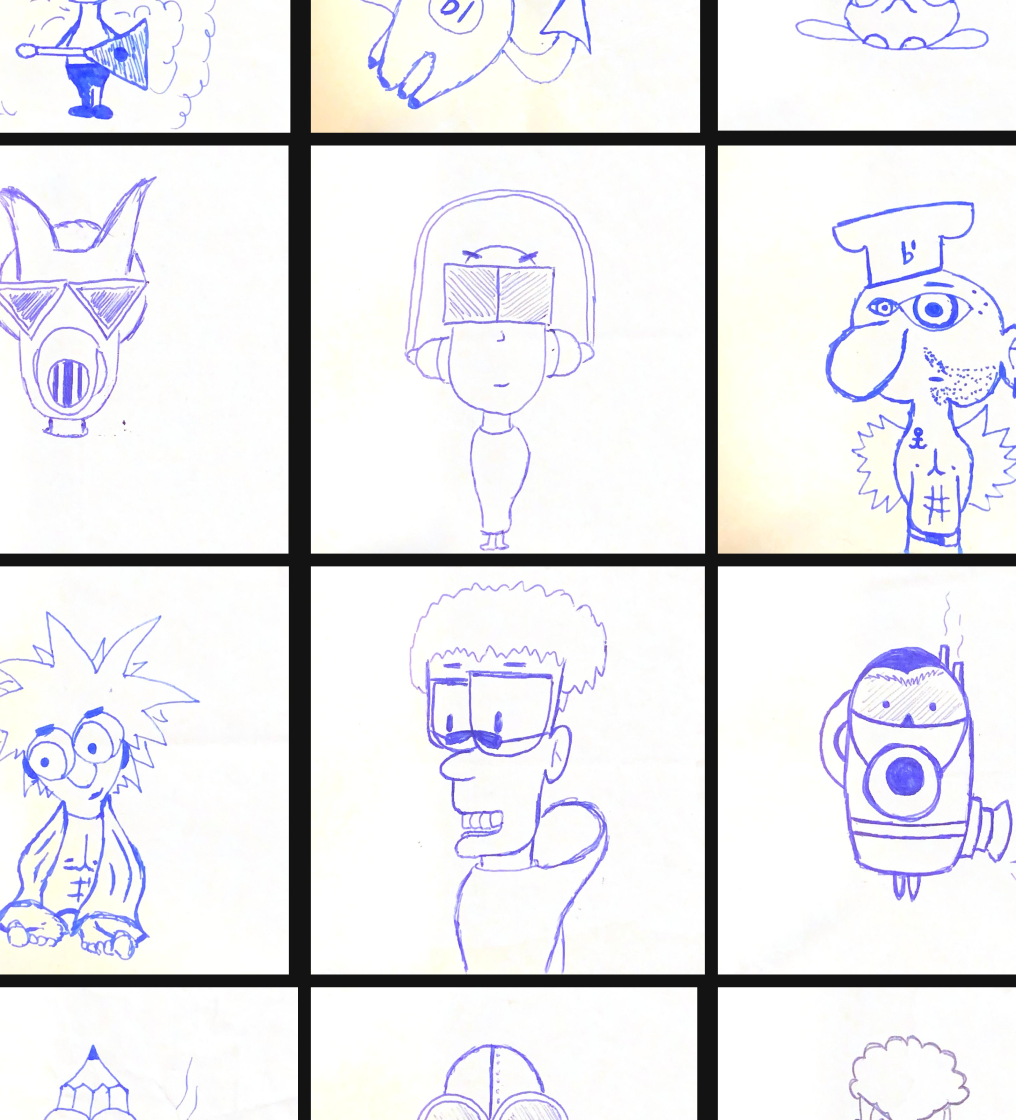 О проекте: Я нашёл свои старые рисунки персонажей, созданные в 2012 году. Это были наброски, сделанные интуитивно, без задачи и системы — просто фантазия на бумаге.